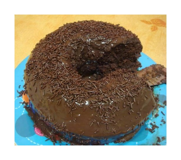 Misture a farinha de trigo com o açúcar, o chocolate e o bicarbonato, reserve