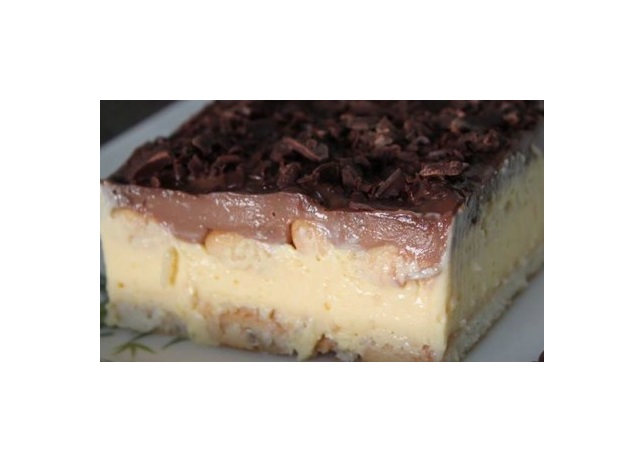 Colocar uma camada do creme de maracujá, colocar mais bolachas molhadas e por cima o chocolate