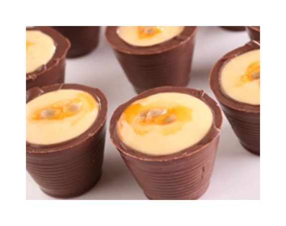 Com uma concha despeje o chocolate derretido no interior dos copinhos plásticos de café.