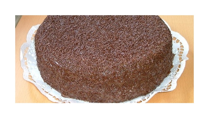 • Cubra o bolo com a outra parte do creme de brigadeiro e enfeite com chocolate granulado ou confetes coloridos.