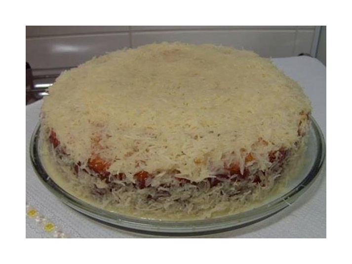 • Após o bolo ficar pronto, cortar em pedaços e colocar a cobertura em cima, levar à geladeira