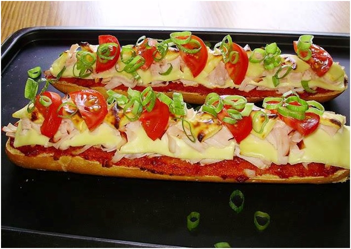 • Coloque sobre a baguete juntamente com os outros ingredientes e leve ao forno para gratinar