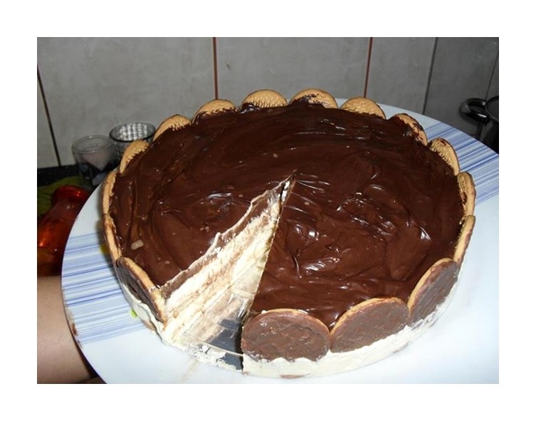 1. Coloque as bolachas maizenas em baixo (forrando o fundo), dos lados da forma coloque os biscoitos calipso (deixando espaço entre uma e outra), e adicione o creme levemente para as bolachas ñ subir, e depois a cobertura e pronto