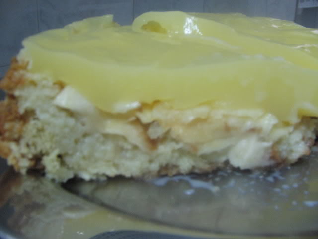 Despeje ainda quente sobre as maçãs, aguarde esfriar e leve á geladeira por 2 horas antes de desenformar e servir.