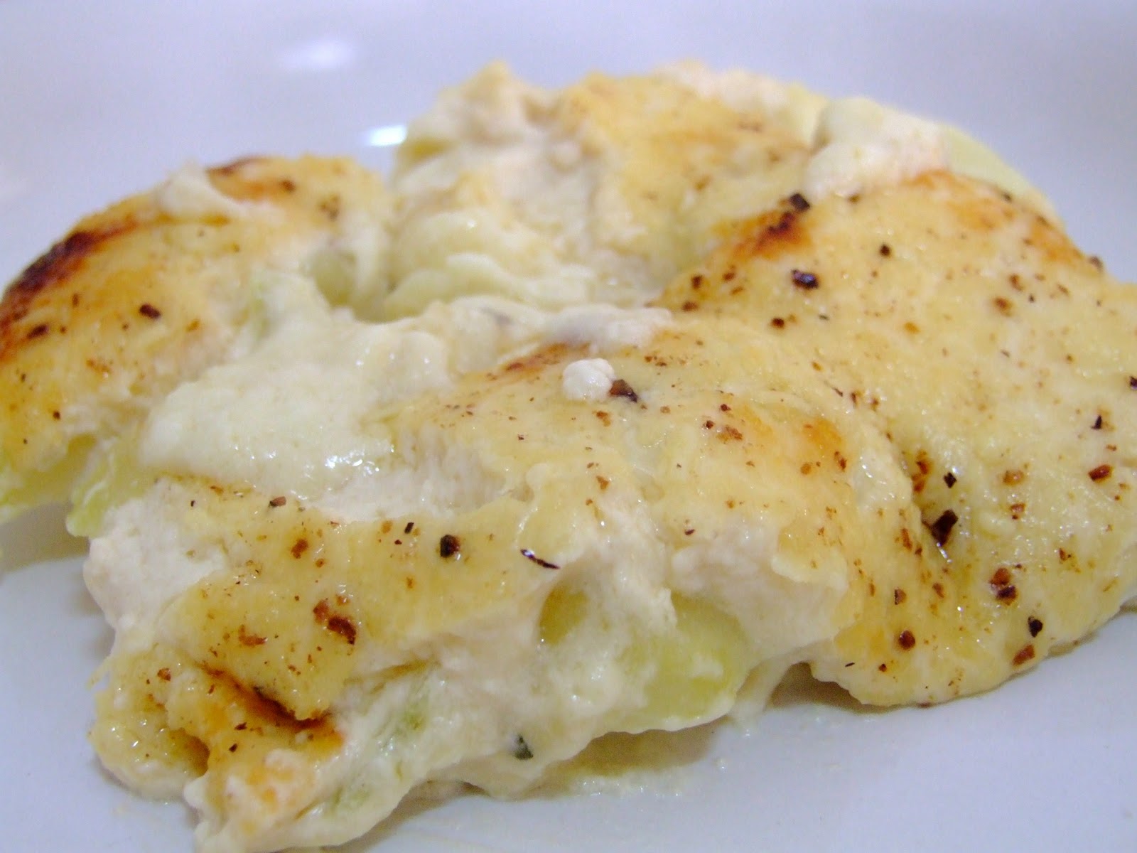 Logo em seguida montar em um refratário, médio, camadas de batata regadas com a manteiga derretida (uma de batata e rega com a manteiga e assim vai)