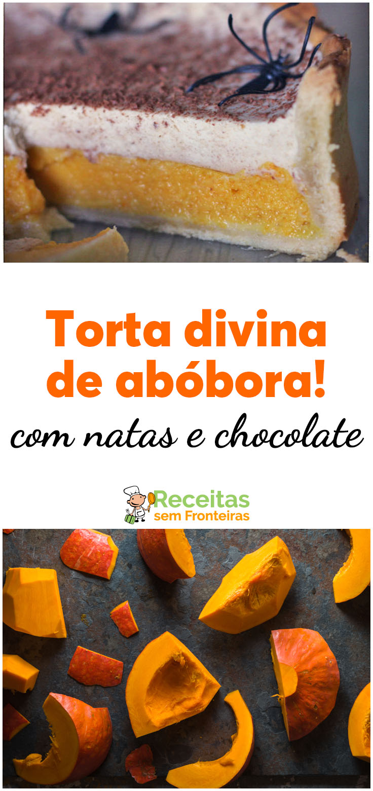 Essa torta fica maravilhosa, a mistura da abobora com o suco de laranja é divina e o toque de chocolate com canela faz todo mundo pedir bis.