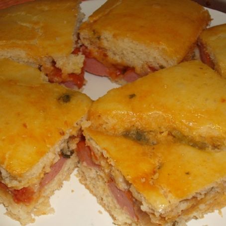 em uma assadeira untada, acrescente metade da massa, o recheio e cubra com o restante da massa.