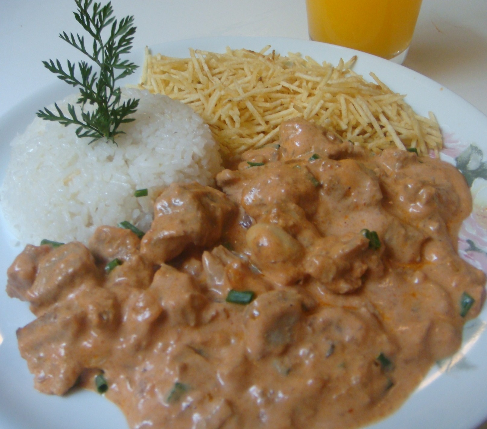 Corte a carne em tirinhas e em uma panela coloque o óleo e depois a carne p/ dourar