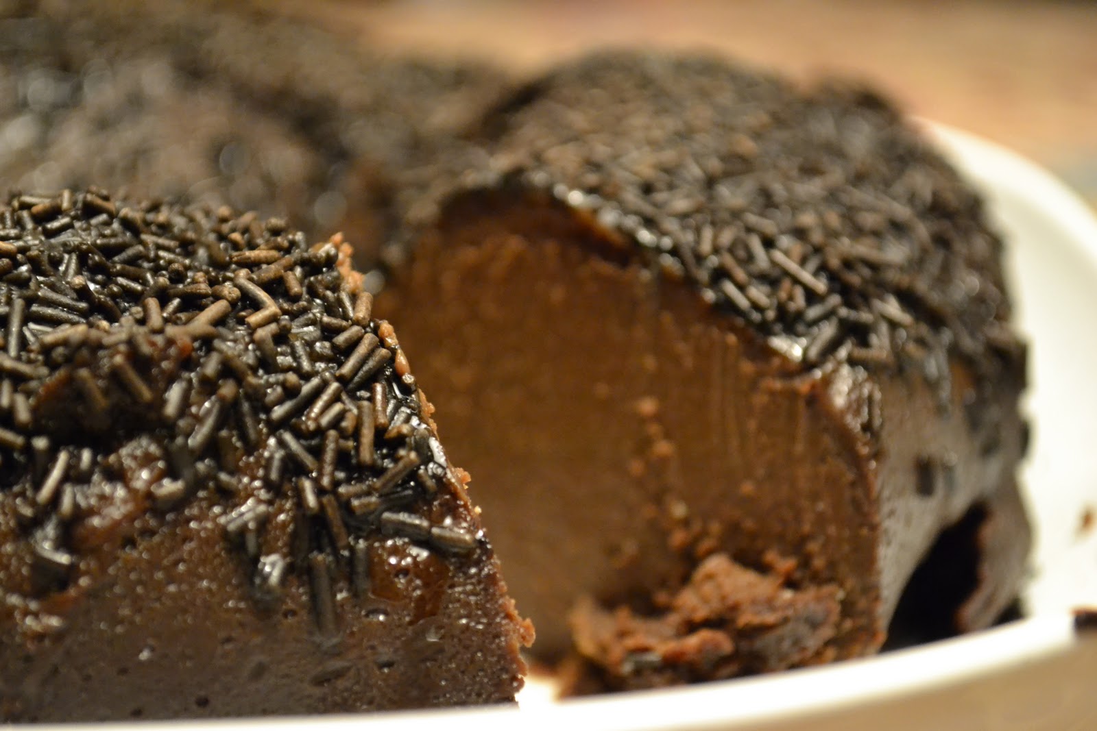 Desenformar e cobrir com o chocolate granulado