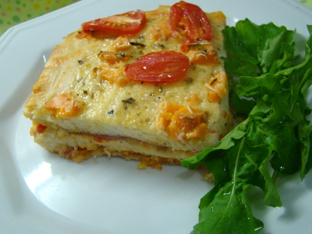 Torta aberta de presunto e queijo