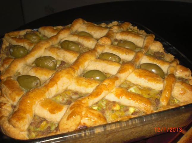 faça cordões com a massa reservada e cubra a torta formando uma grade