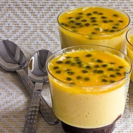 Com essa mesma receita da pra fazer mousse de manga haden,morango...é só trocar as frutas e a calda...