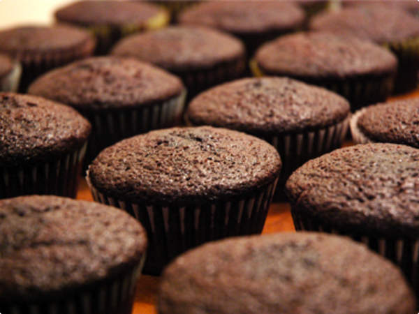 Coloque as forminhas de papel dentro das forminhas de alumínio e enche-as até a metade com a massa do bolo.