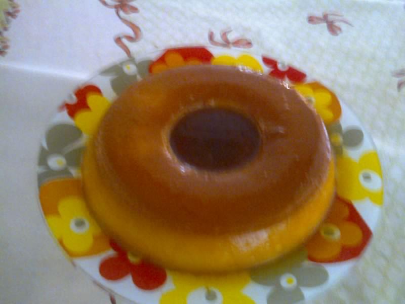 fazer uma calda caramelizada de açucar e agua e colocar numa forma de ir ao banho maria.despeja o liquido batido e cozinhar em banho maria por mais ou menos 50 minutos.desenformar frio e servir.