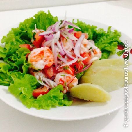 Tenho alguns pitus (um crustáceo parecido com o camarão) no congelador e resolvi tentar fazer um ceviche com eles. Do meu jeito, com meu toque, o ceviche ficou bem gostoso.