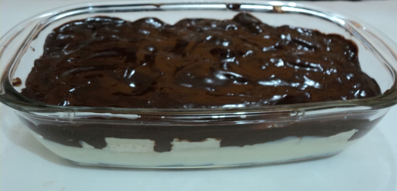 Derreta a barra de chocolate meio-amargo e em seguida, misture-a com um creme de leite,