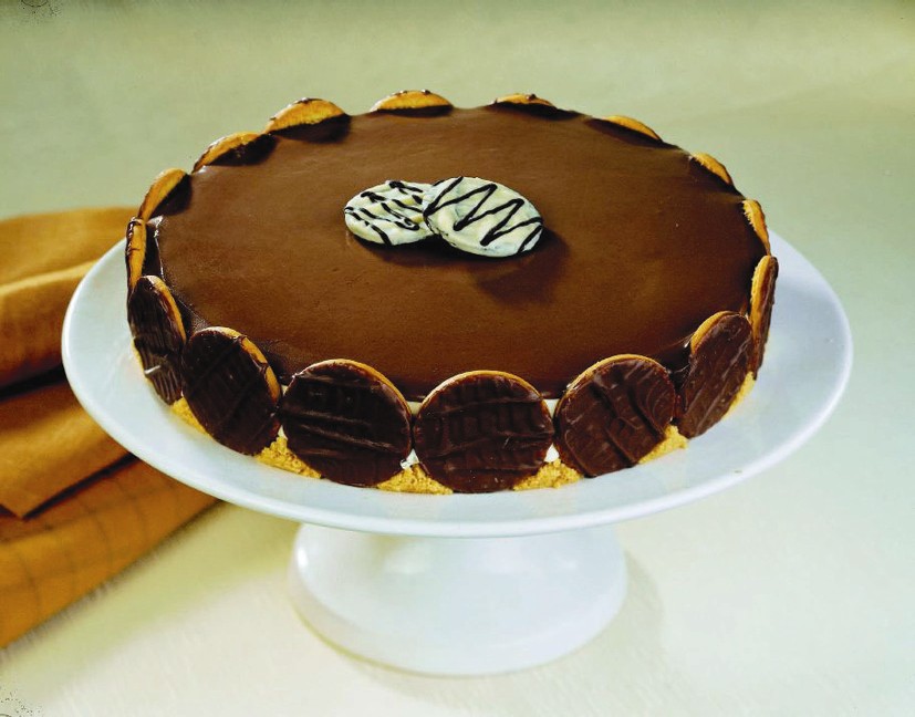 Triture os biscoitos maisena e misture a manteiga. Forre o fundo da forma. Coloque os biscoitos Calipso Nestlé na lateral da forma e reserve.