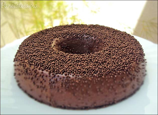 Coloque em forma de vidro ou própria para microondas untada com óleo (eu uso margarina) por 8 minutos em potência máxima.