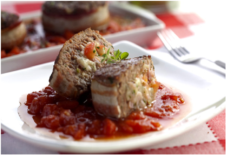 4. Cubra com outra porção de carne, molde o medalhão e prenda a fatia de bacon ao redor.