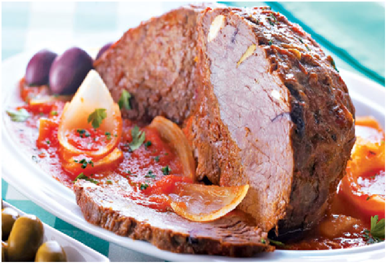 Alcatra cozida na pressão com azeitonas e amêndoas