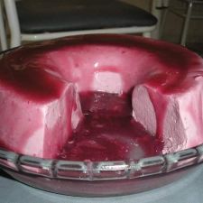 Retirada da geladeira, passe uma faca nas laterais da forma e desenforme a gelatina.