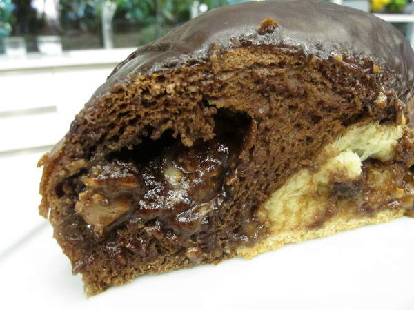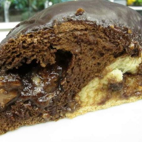 5° - Coloque a trança numa assadeira polvilhada com farinha de trigo, pincele 1 ovo batido e deixe a trança descansar até dobrar de tamanho (+/- 30 minutos). Leve ao forno pré aquecido a 180°C por 30 minutos. Retire do forno, deixe amornar e despeje o fondant de chocolate.