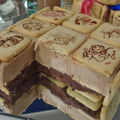 - 2 pacotes de biscoito recheado quadrado separados na metade (uma parte com recheio e outra sem recheio)