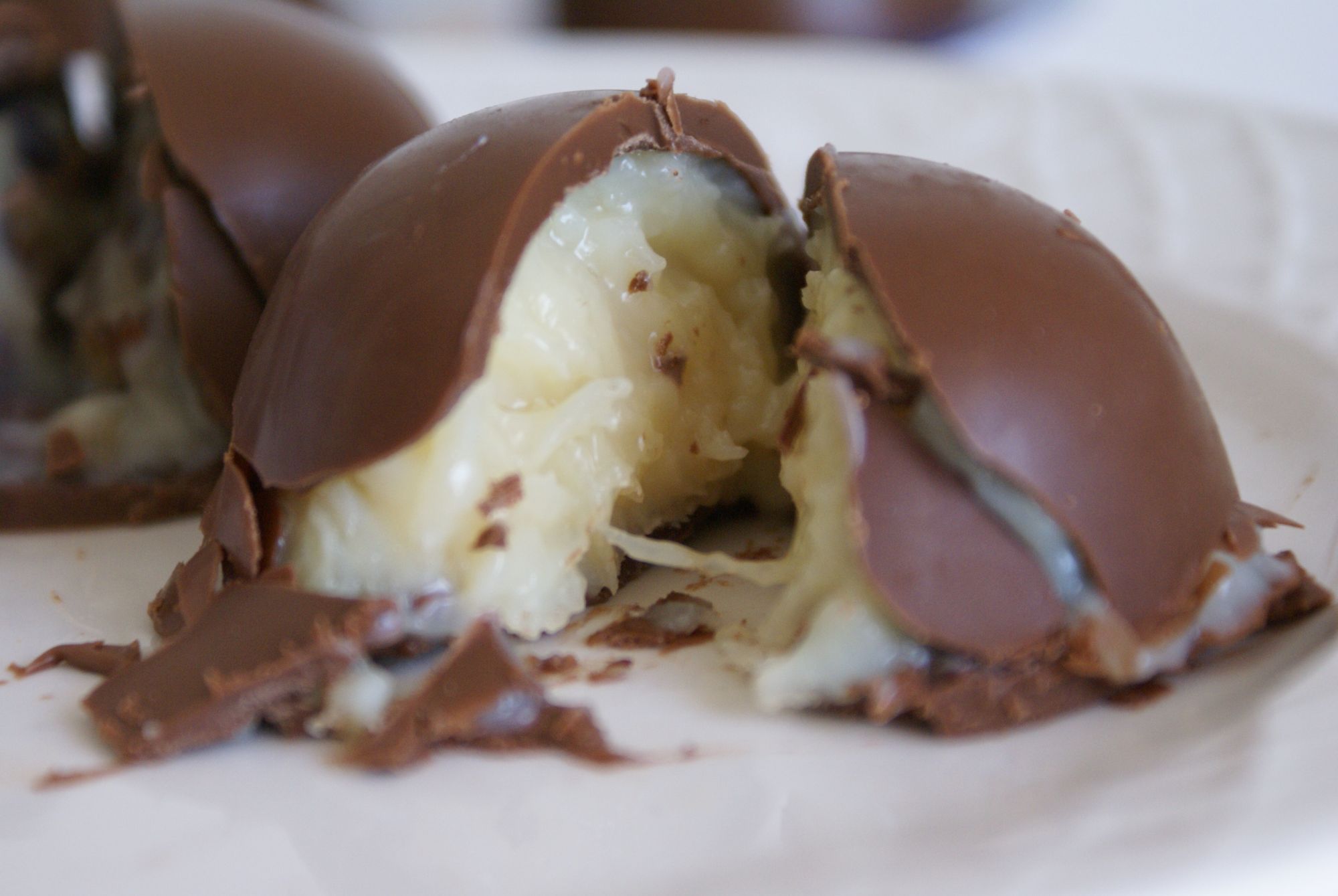 Recheie com o beijinho e cubra com uma camada fina de chocolate