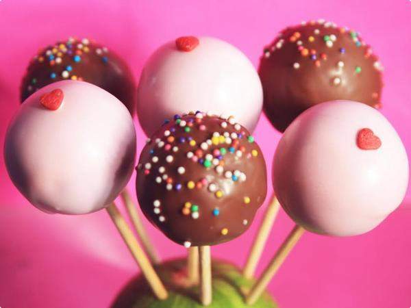 Depois, tire as bolinhas do freezer, espete um palito plástico de pirulito ou de churrasco e banhe no chocolate ao leite derretido.