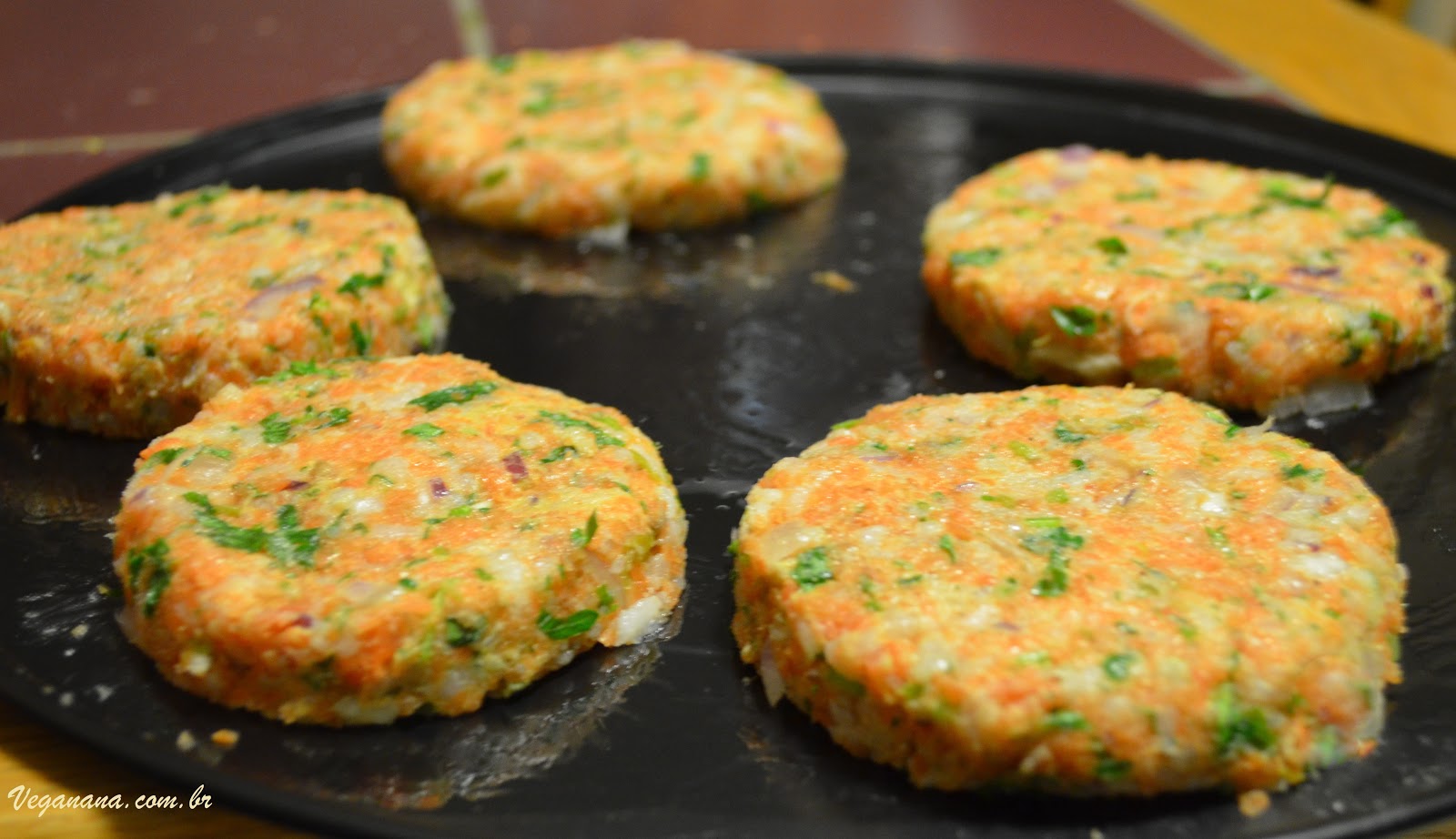 Em uma tigela, misture a cenoura, a cebola, o ovo, a aveia em flocos, a salsinha, o azeite de oliva e o sal. Misture bem até ficar homogêneo e modele os hambúrgueres.