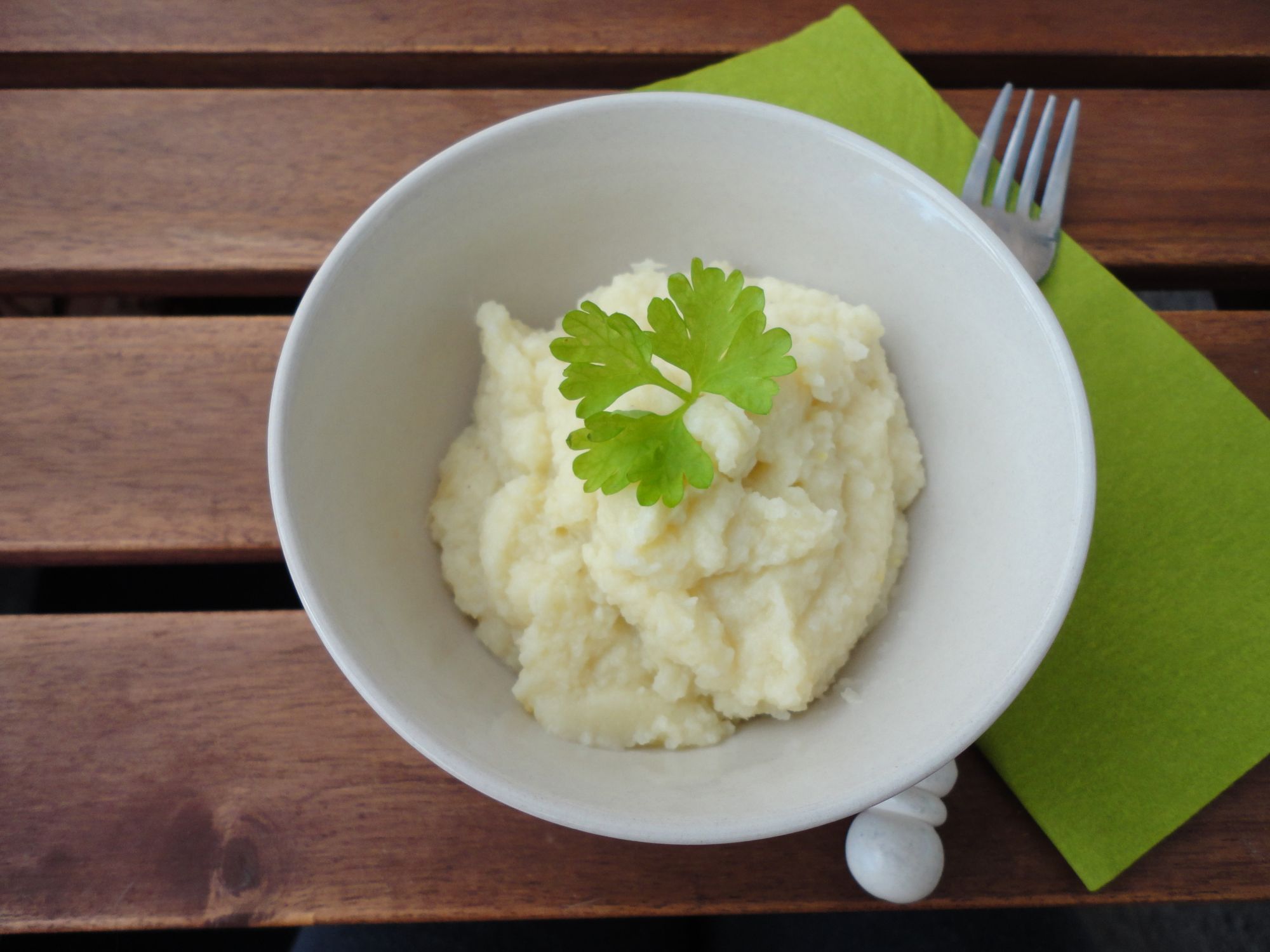 Coloque o azeite, o sal e o cream cheese light em uma panela e leve ao fogo e vá misturando até chegar ao ponto de um pure e sirva.