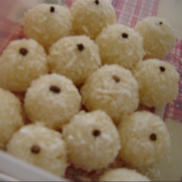 Faça bolinhas, passe pelo açúcar cristal e finalize com cravos-da-índia.