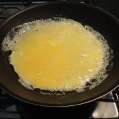 Bata ligeiramente os ovos (clara e gema) e acrescente um pouquinho de pimenta do reino e a maisena. Em uma frigideira previamente aquecida derreta a manteiga (ou use o azeite) e acrescente um pouco do ovo batido.