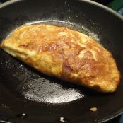 Acrescente os demais ingredientes e cubra com uma tampa e deixe por aproximadamente 1 min em fogo baixo. Retire a tampa e dobre a omelete como na foto acima. Está pronto.