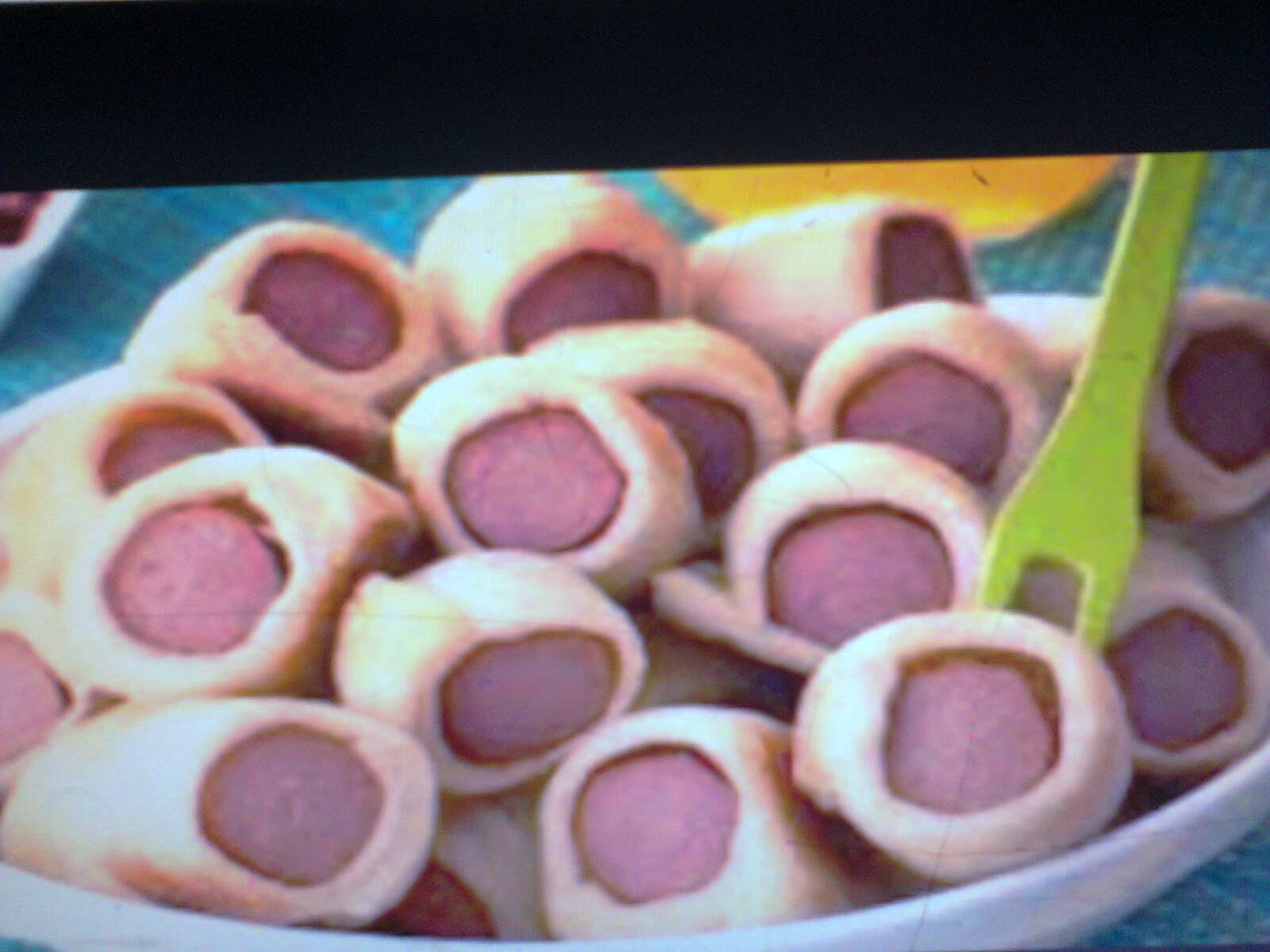 4. Unte as mãos com óleo e enrole as salsichas na massa