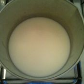 Coloque o leite para ferver e dissolva a maria mole no Leite fervido.