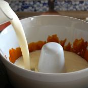 Após caramelizar a forma, despeje a mistura que foi batida no liquidificador nesta forma e leve a geladeira.