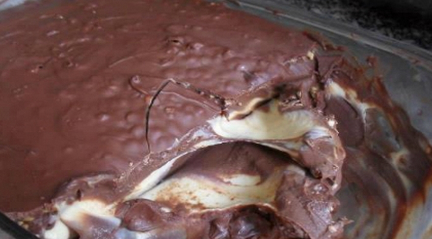 Coloque em um refratário a metade deste creme de chocolate e leve ao congelador por 20 minutos