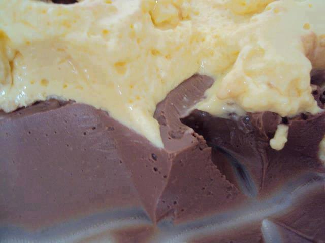3. Bata no liquidificador os ingredientes do creme/mousse de maracujá e coloque sobre o creme de chocolate.