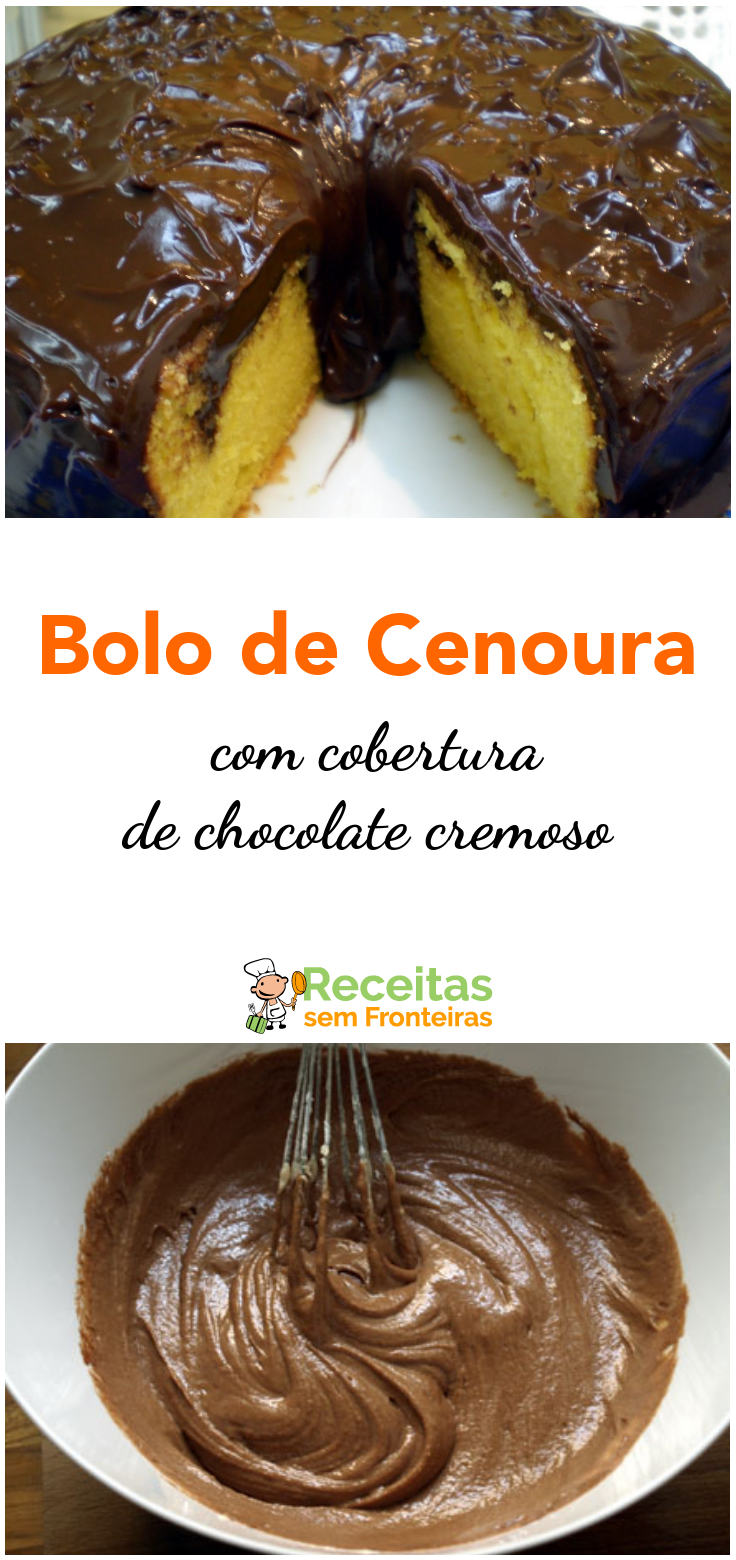 Bolo de Cenoura com cobertura de chocolate cremoso
