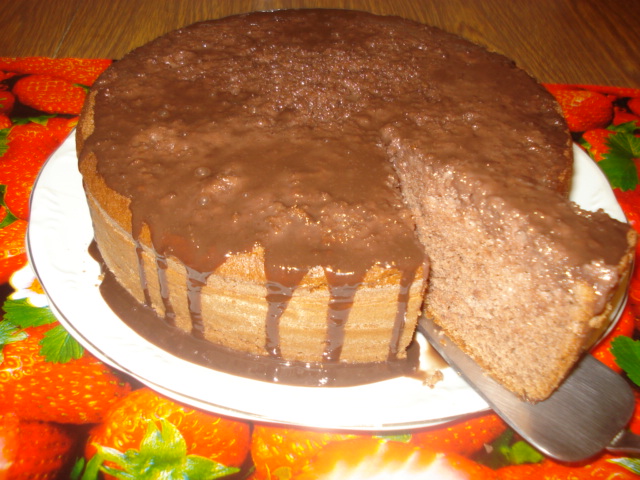 Os franceses preferem o bolo sólido, em uma única camada, mas você pode cortá-lo ao meio e recheá-lo com creme de chantilly ou geléias diversa, antes de cobri-lo com glacê de chocolate.