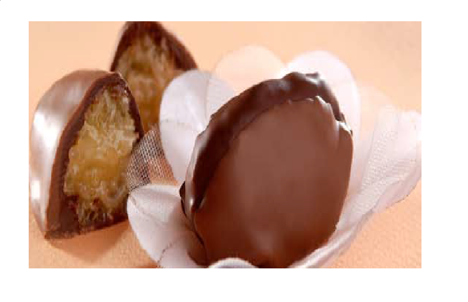 6. Faça o primeiro banho do recheio no chocolate meio amargo temperado e o segundo no chocolate ao leite