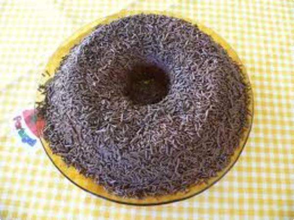 Bata no liquidificador o leite condensado , o Creme de Leite , o Chocolate em Pó , o açúcar, a manteiga e os ovos. Quando ficar homogêneo, despeje em uma forma com furo central (19cm de diâmetro) untada com manteiga. Cubra com papel de alumínio e asse em banho-maria em forno médio (180°C) por cerca de 1 hora e 30 minutos. Desenforme ainda morno e decore toda a superfície com o chocolate granulado. Leve à geladeira por cerca de 6 horas.