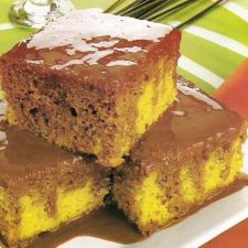 Em uma panela junte todos os ingredientes da cobertura do Bolo e misture-os. Leve ao fogo baixo e mexa até que a manteiga derreta. Para completar o ponto da cobertura, mexa a mistura por volta de 5 minutos ou até que a mesma vire uma calda cremosa.Despeje a mistura no bolo ainda quente. Importante, não deixe ferver a mistura da cobertura.