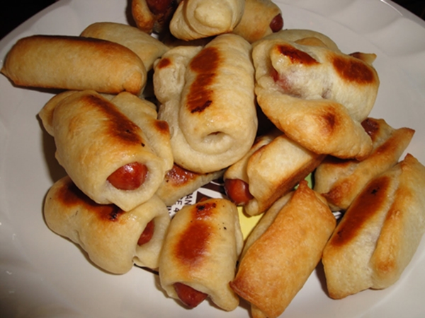 Salsichas envoltas em massa e assadas no forno. Nos Estados Unidos, é conhecido como "pigs in blankets".