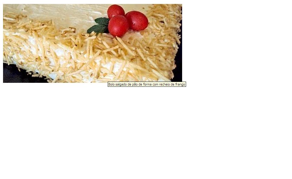 Para finalizar: Molho - maionese (passar em toda a lateral do bolo salgado) e batata palha.