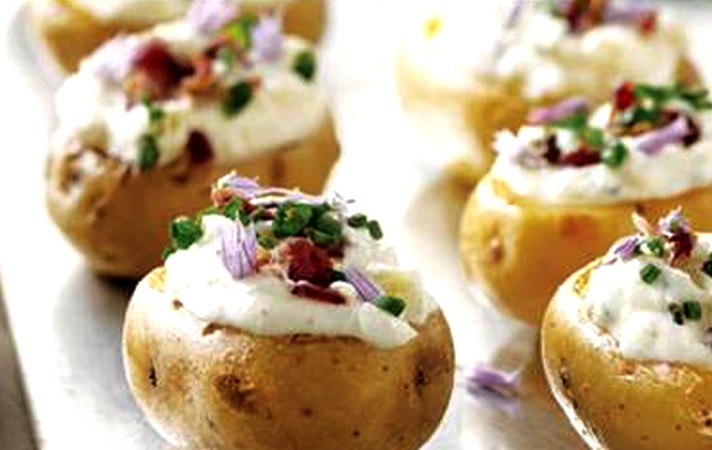 Recheie as batatas e leve ao forno preaquecido por 10 minutos. Sirva quente.