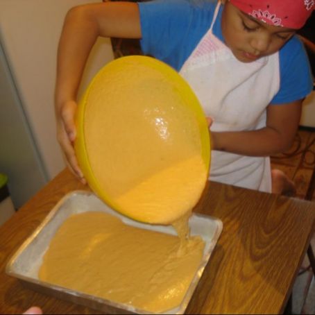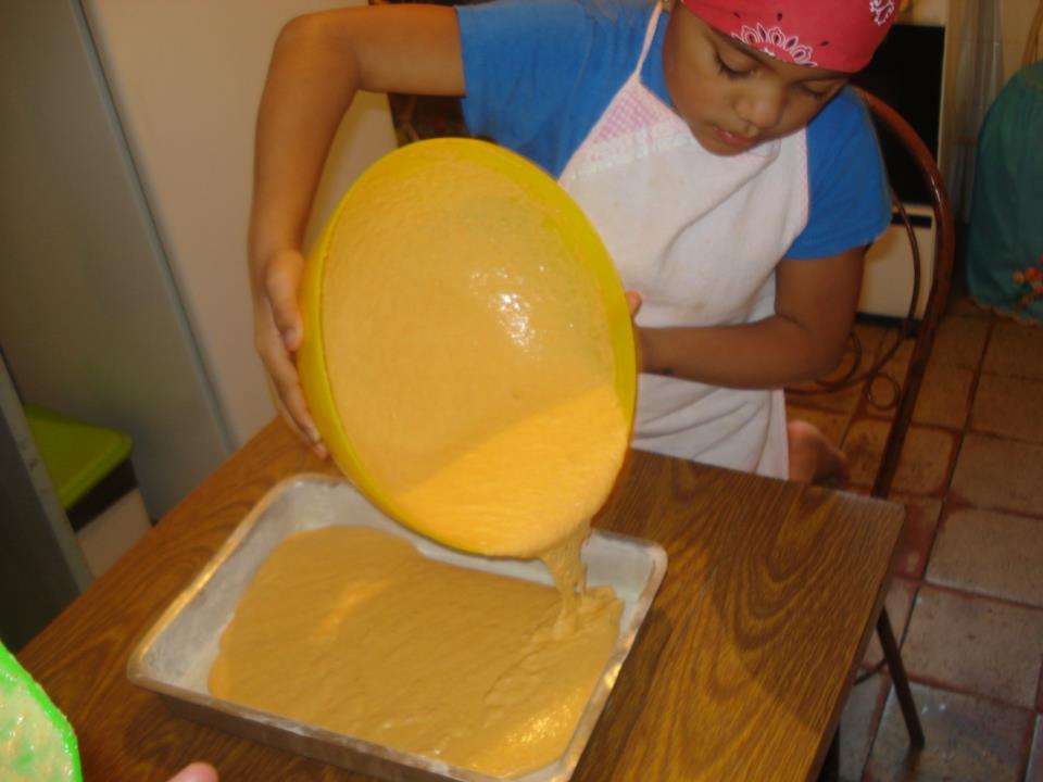 Depois do bolo já frio desenforme e jogue a cobertura por cima.
