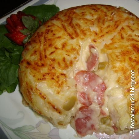 Ponha também uma camada do recheio desejado, quantidade para cobrir a batata, deixando as bordas livres