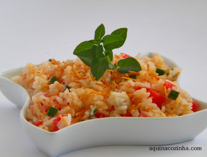 Misture os outros ingredientes, e misture ao arroz. Forma untada e polvilhada.